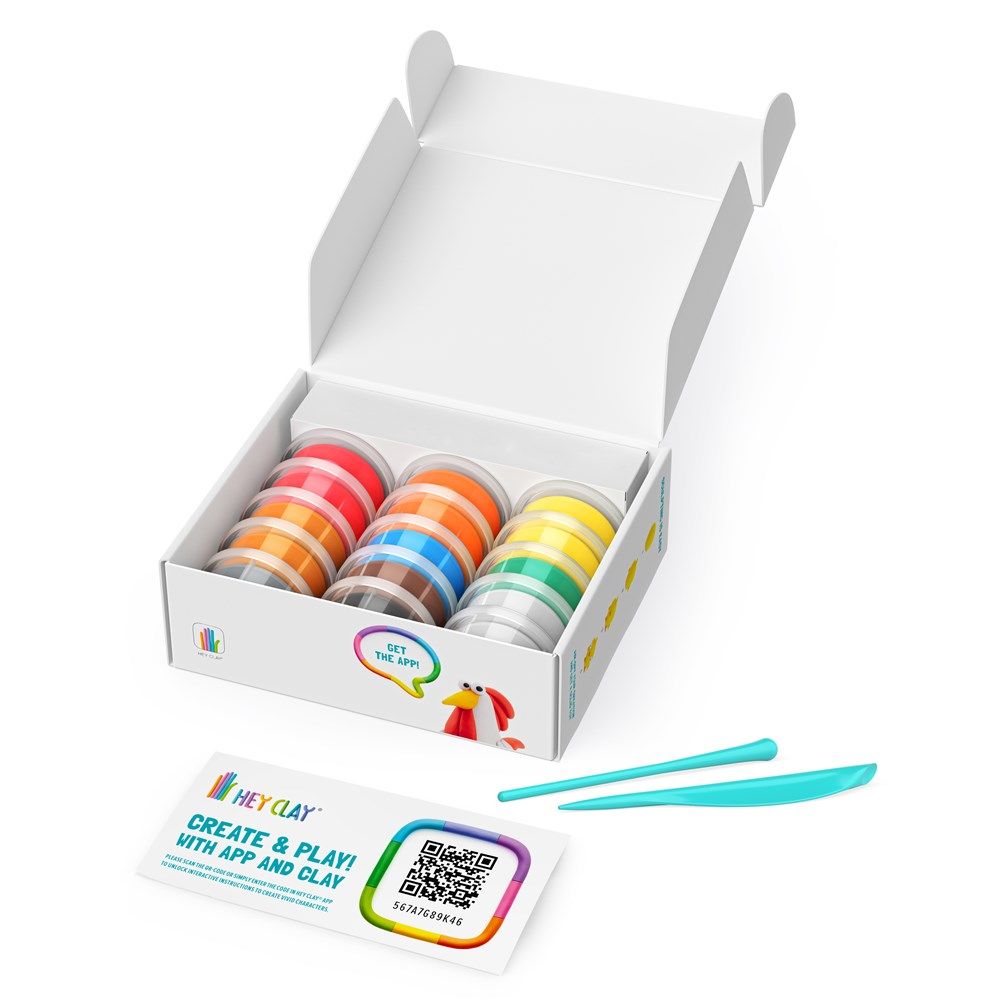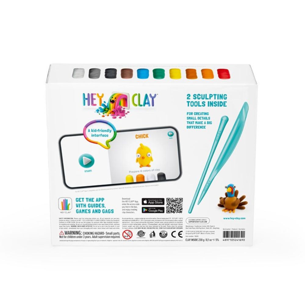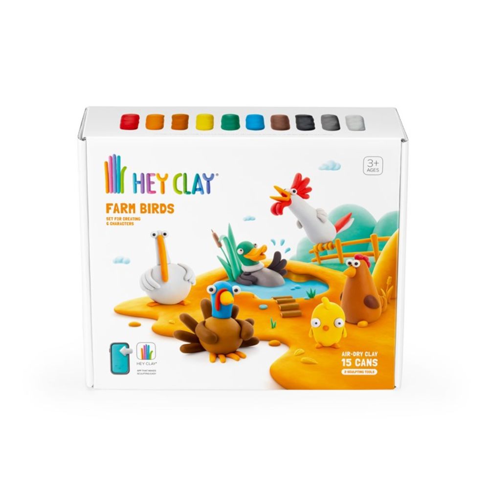 Become a professional clay artist! The 18 cans of high-quality clay included in this vibrant set are soft, lightweight, non-sticky, nontoxic, and stain-free—perfect for young artists taking their first step into the magical world of clay creativity. The fun starts once you download the free app and gain full access using the promo code included in the box. Pick one of six goofy farm birds—Chick, Rooster, Turkey, Duck, Goose, or Hen—and follow along with interactive 3D step-by-step instructions to mold your funny feathered friends.