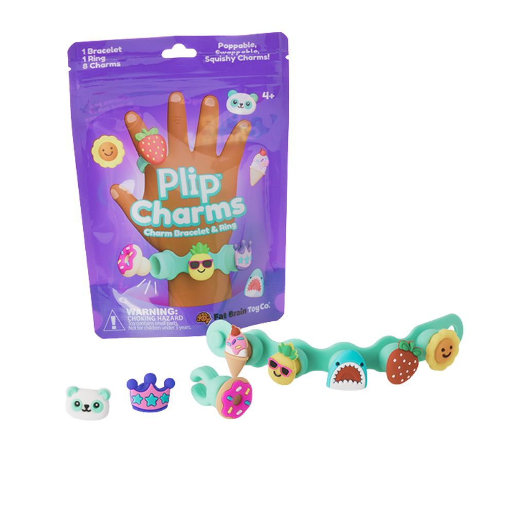 Let your personality POP with Plip Charms! Pick your favourite charms and snap them into the silicone bracelet and ring, or even accessorize a backpack. Pull them out for the most satisfying POP! Each set comes with a bracelet, a ring, and eight unique charms β€” perfect for collecting, trading, and showing off your style while encouraging creativity and fine motor skills.