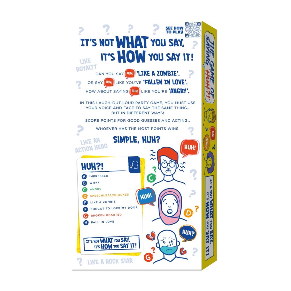 Get ready to laugh until your cheeks hurt! The Game of Saying ‘Huh’ is the ultimate family and friends game that tests your wit, voice skills, and acting chops. Say the same word or phrase in totally different ways, guess who’s doing what, and collect points for the most convincing performances. It’s silly, unpredictable, and guarantees hilarious game nights!
