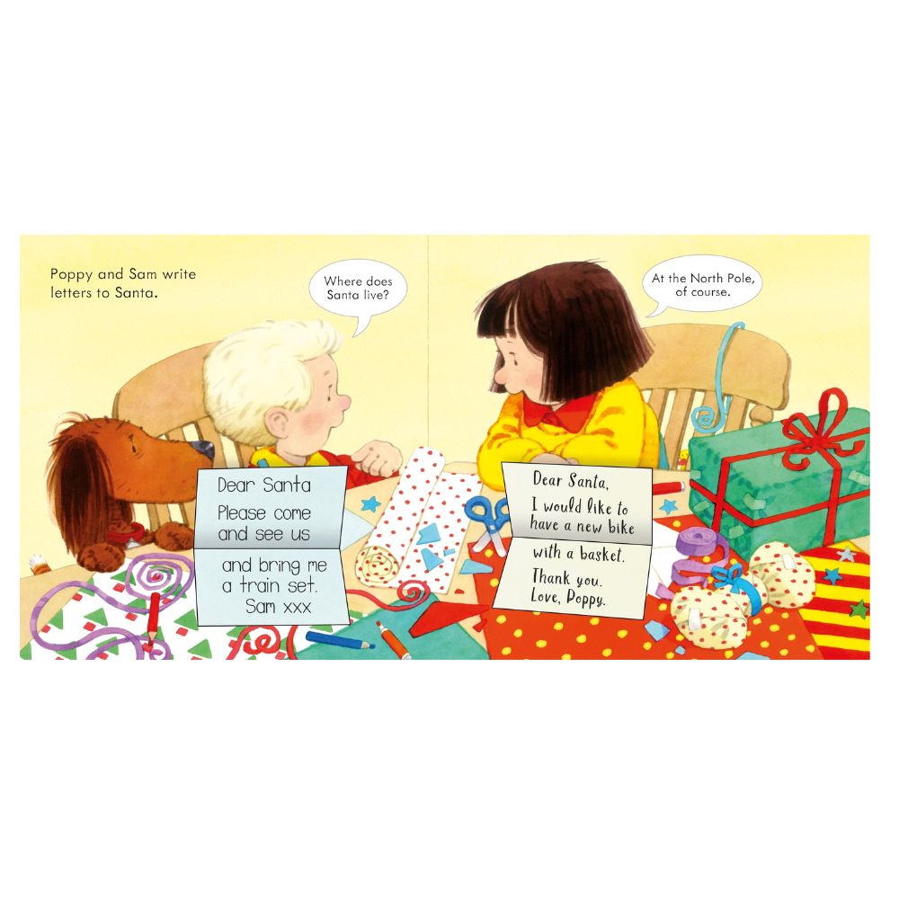 It’s Christmas Eve at Apple Tree Farm! Peep under the flaps to find out what Poppy and Sam are doing to get ready for Christmas Day.