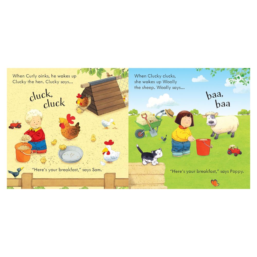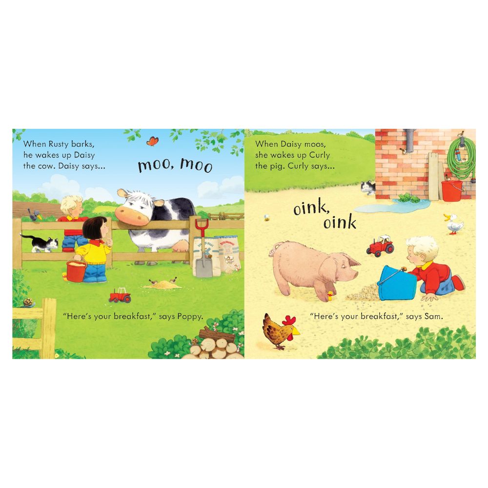 Poppy and Sam are feeding the animals at Apple Tree Farm, and they’re a noisy bunch! Little children will love hearing the farm come to life as they press the pages of this entertaining book, to hear Curly the pig, Woolly the sheep, Rusty the dog and more. At the end you’ll hear all the noisy animals at once, accompanied by a jolly tune.